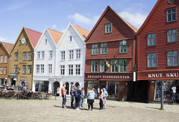 Our guided tours end in front of the Bryggen facade. / Omvisning en sommerdag ute på Bryggen Silje Katrine Robinson | Stiftelsen Museum Vest
