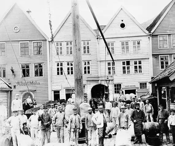 Under pesten døde halvparten av landets befolkning. I dette vakuumet etablerte hanseatene sitt Tyske Kontor på Bryggen ca. 1360. Før hanseatene tok over all bebyggelse på Bryggen, bodde det lokale familier her. Århundrene kom og gikk; kriger, handelsblokader og branner.